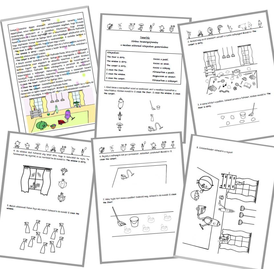Takarítás - nyelvoktató mesekártya és feladatlapok